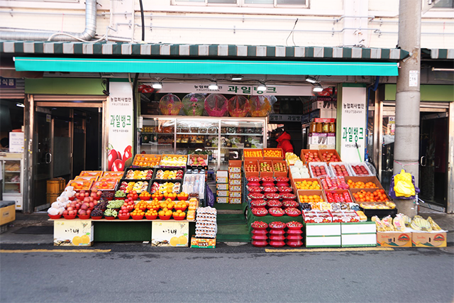 저희 과일뱅크는 부산 남구 대연시장 1층에 위치하고 있습니다.